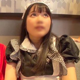 【清楚】メイドコスプレが似合う黒髪乙女を生ハメ。 友達と手を繋ぎながら快感に浸り、気持ち良すぎて舌が出ちゃってます。